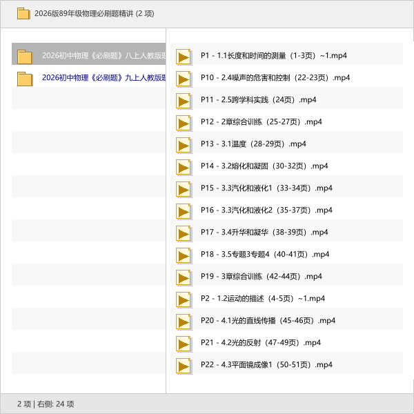 本次分享的资源是《2026版八九年级物理必刷题精讲》,包含八上和九上人教版的全套题目精讲视频。