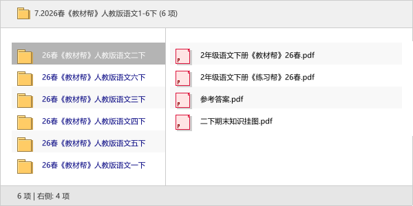 本次分享的资源是2026春季《教材帮》人教版语文1-6年级下册全套电子版。✨