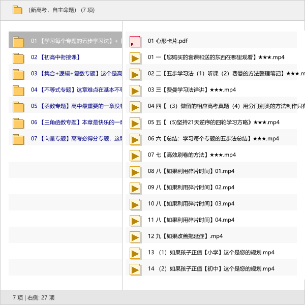 里面从高中三年的学习规划、五步学习法,到集合、函数、三角函数等核心专题都涵盖啦,尤其函数部分被特别标注为“最重要的一章”,而三角函数和向量则是高考必拿分的快乐章节!