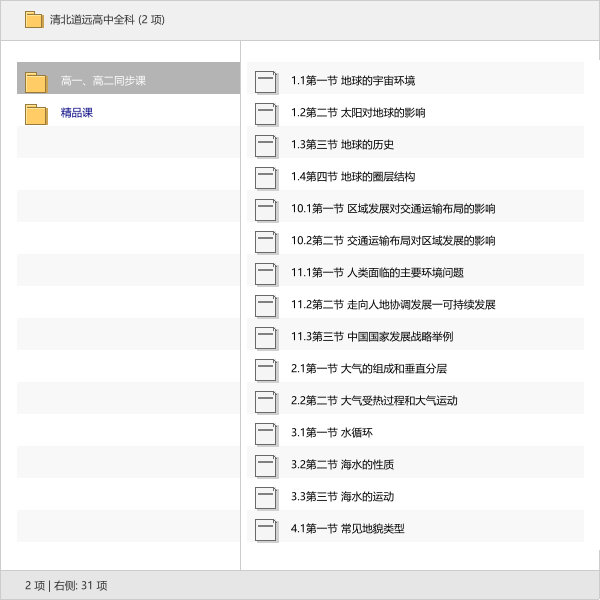 本次分享的资源是「清北道远高中全科」,包含高一高二的同步课和精品课两部分。