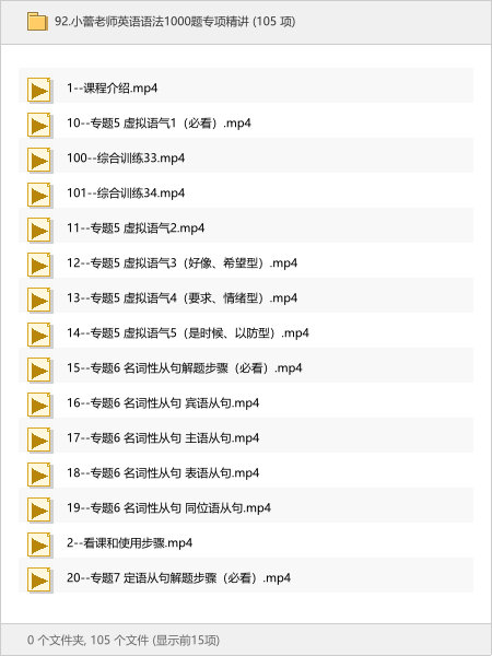 本次分享的资源是《小蕾老师英语语法1000题专项精讲》,一套超扎实的语法精讲视频!