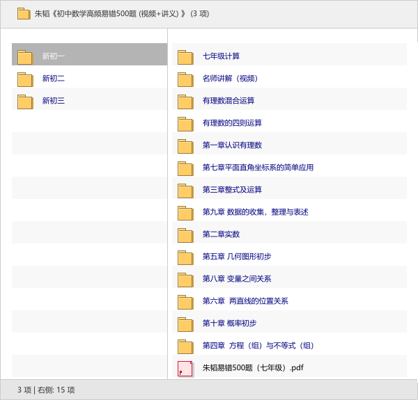 这套资料真的太实用了,专门针对初中数学里那些反复踩坑的难点和易错点!它按照年级分成了【新初一】、【新初二】和【新初三】三个完整部分,每个年级都有配套的详细讲义和精讲视频🎥。