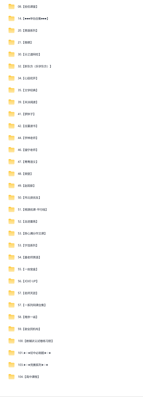 VIP 精品资源 [有道杨亮全民英语背诵营完整版完结]+[有道杨亮速记高考词汇3500(54节)]+[有道杨亮考研5500词汇(82)完结] [有道杨亮全民英语背诵营完整版完结]+[有道杨亮速记高考词汇3500(54节)]... 5 年前 0 0 10 10